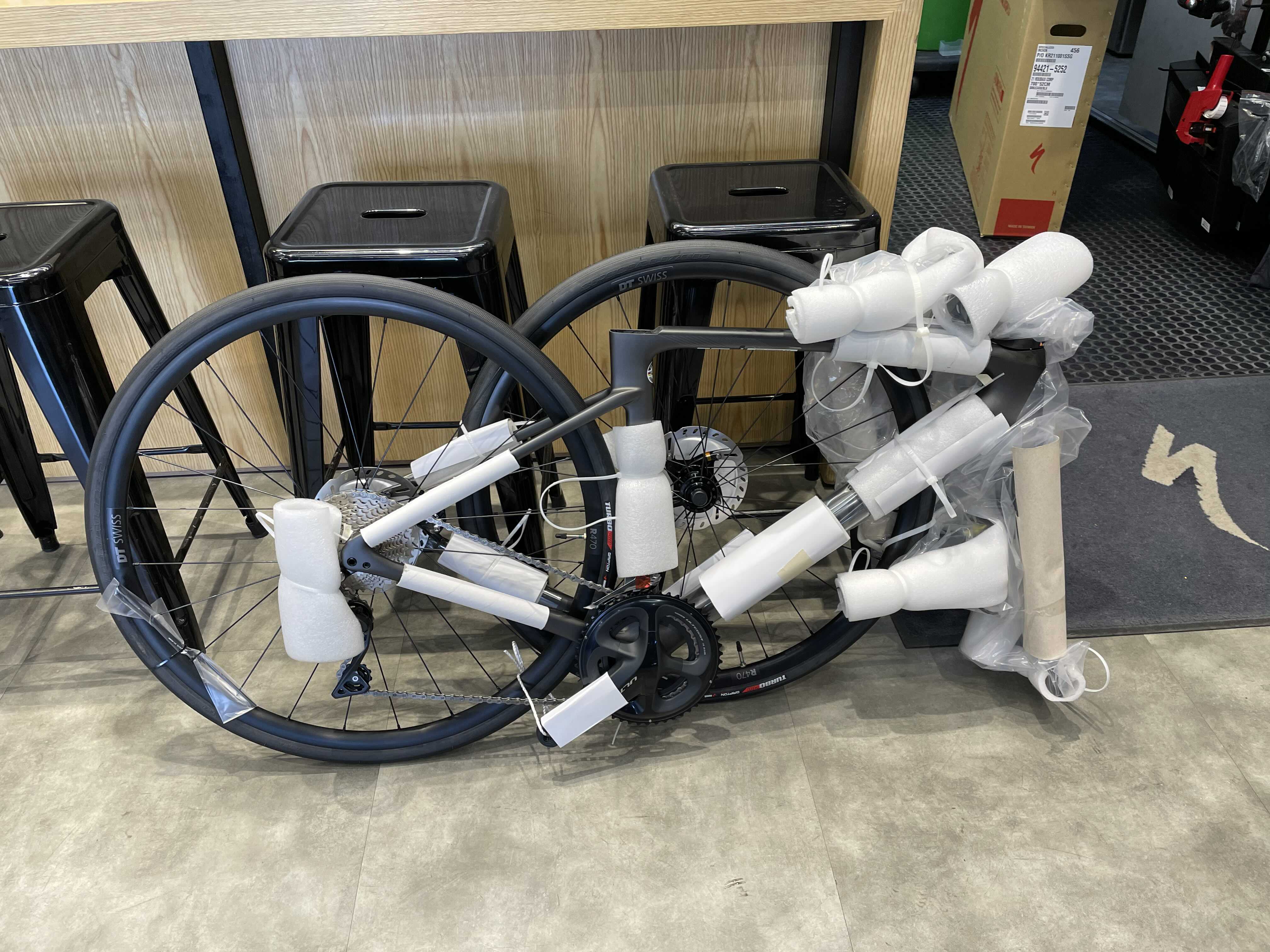 그것도 전시품도 아니고 박스에서 꺼내 보내주는 Satin Smoke Black 색상 Roubaix Comp!